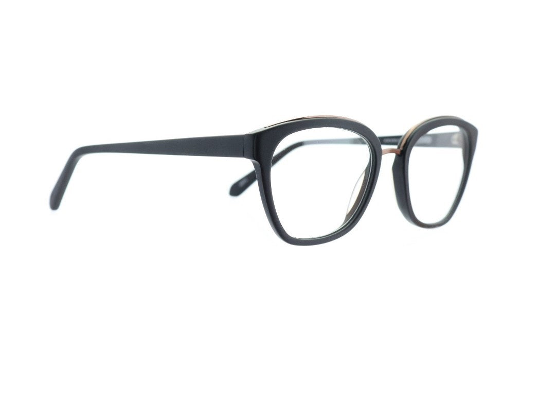 A touch of modern elegance. Matte black acetate frame that shows a little flare with the copper metal that's featured along the top and nose bridge. Oldazz Eyes soft case included. The lenses are blue-light blocking and have an anti-reflective treatment. Easy on the eyes for you and those around you!
